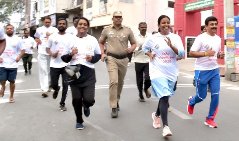 தேசிய வாக்காளர் தின விழிப்புணர்வு மாரத்தான் ஓட்டம்: கலெக்டர் பங்கேற்பு
