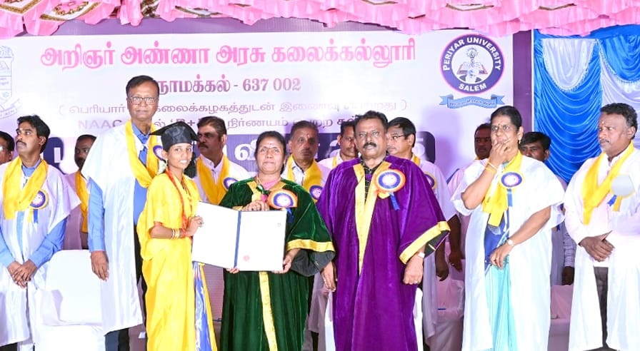 நாமக்கல் அறிஞர் அண்ணா அரசு கலைக் கல்லூரியில், மாணவ, மாணவிகளுக்கு பட்டமளிப்பு விழா சிறப்பாக நடைபெற்றது.