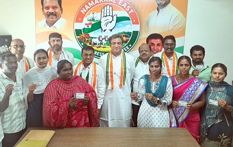 நாமக்கல்லில் நடைபெற்ற நிகழ்ச்சியில், காங்கிரஸ் கட்சியில் சேர்ந்த உறுப்பினர்களுக்கு, அகில இந்திய காங். செயலாளர் நிவேதித் ஆல்வா அடையாள அட்டைகளை வழங்கினார்.