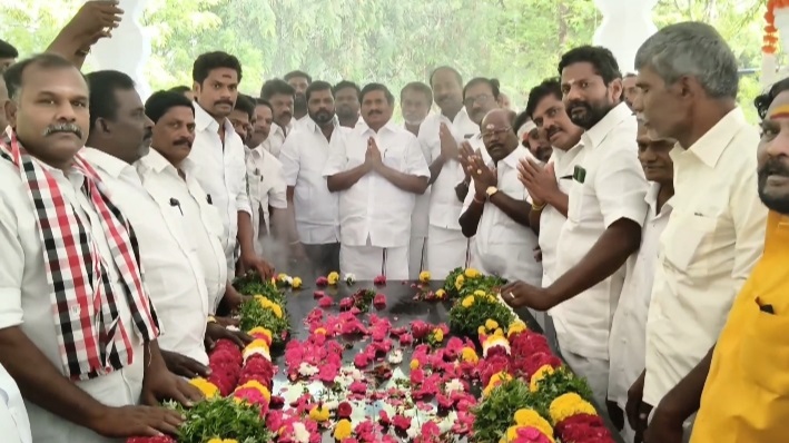 பி.கே. மூக்கையாத் தேவர் பிறந்தநாளை முன்னிட்டு நினைவிடத்தில் அதிமுகவினர் மலர் தூவி மரியாதை