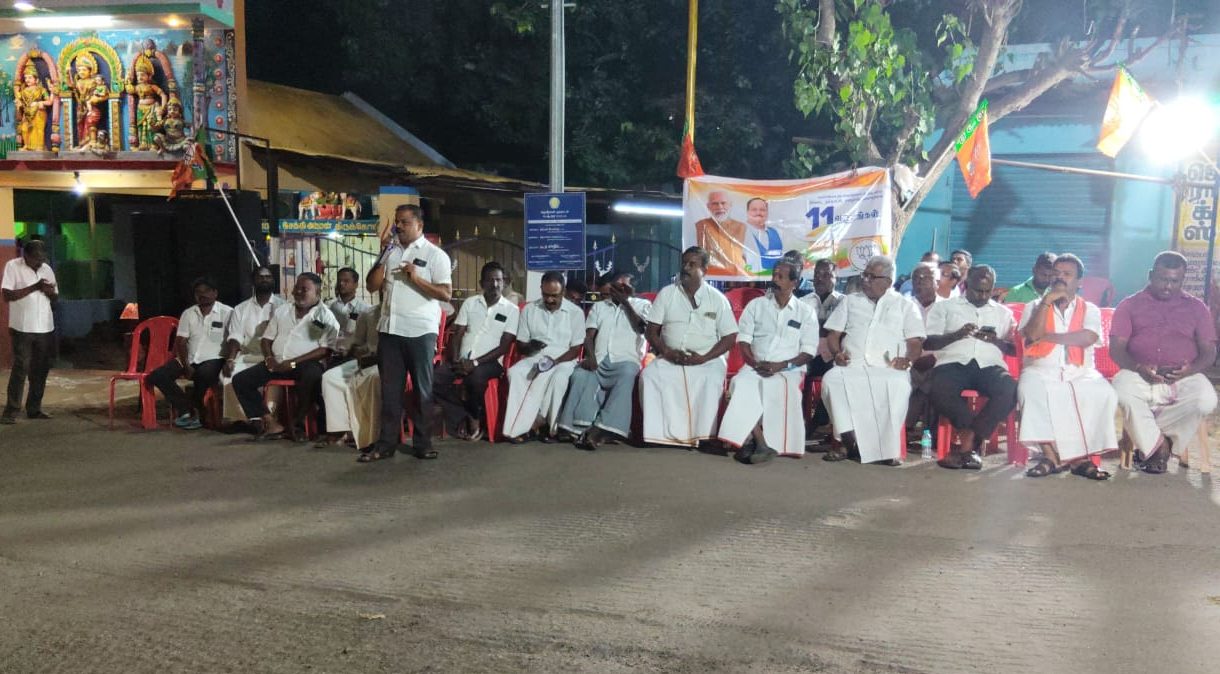 அதன் ஒரு பகுதியாக தென்காசி மாவட்டம் தென்காசி நகர பாஜக சார்பில் வாய்க்கால் பாலம் மந்தை இசக்கி அம்மன் கோவில் முன்பு மத்திய அரசின் 11 ஆண்டுகால சாதனை விளக்க தெருமுனைப் பிரசாரம் நடைபெற்றது.
