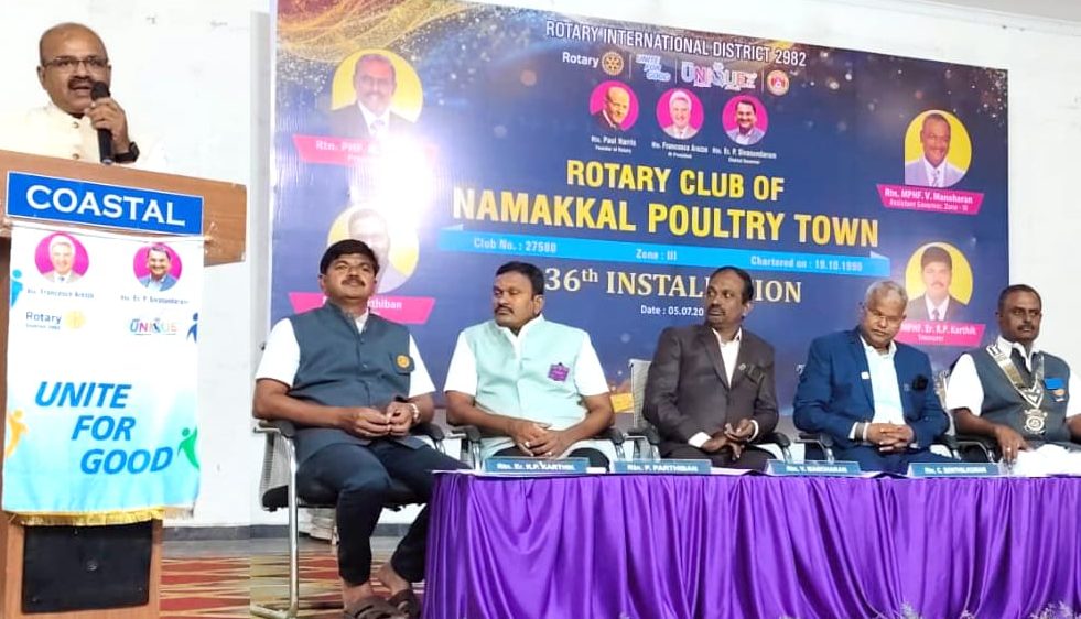 தமிழ்நாடு லோக் ஆயுக்தா உறுப்பினர் ராமராஜ், நாமக்கல்லில் நடைபெற்ற ரோட்டரி சங்க விழாவில் கலந்துகொண்டு பேசினார்.