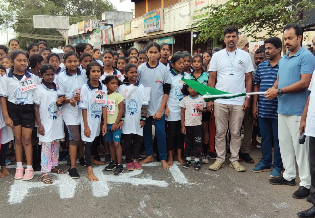 ஆண்களுக்கு தென்காசி குத்துக்கல் வலசை பகுதியில் தொடங்கி 10 கிலோமீட்டர் வரை மாரத்தான் நடைபெற்றது.