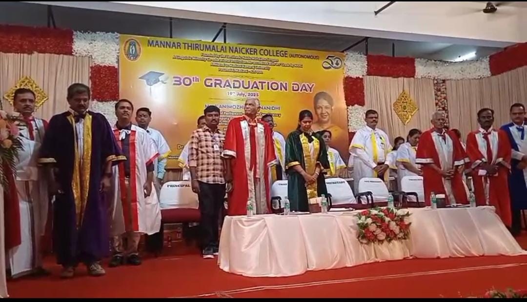 மதுரை திருப்பரங்குன்றம் பசுமலை அருகே உள்ள மன்னர் திருமலை நாயக்கர் கல்லூரியில் இன்று 30 வது பட்டமளிப்பு விழா லெட்சுமியம்மாள் வீரப்ப நாயக்கர் கலையரங்கத்தில் நடைபெற்றது.