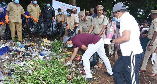 இந்த ஆய்வின்போது, குற்றாலத்தின் பல்வேறு பகுதிகள் குப்பை கூளங்களாக காட்சி அளித்த நிலையில், அதை பார்த்து அதிர்ச்சியடைந்த மாவட்ட ஆட்சியர் அங்கு உள்ள பேரூராட்சி அதிகாரிகளை அழைத்து கண்டித்ததோடு மட்டுமல்லாமல், அனைத்து துறை ஊழியர்கள் மற்றும் அதிகாரிகளுடன் ஒருங்கிணைந்து சுற்றுலாத்தலமான குற்றாலத்தில் உள்ள குப்பைகளை சுத்தம் செய்யும் பணியில் ஈடுபட்டார்.