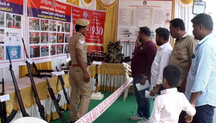 தமிழ்நாடு காவலர் தினத்தையொட்டி, நாமக்கல்லில் விழிப்புணர்வு கண்காட்சி நடைபெற்றது.