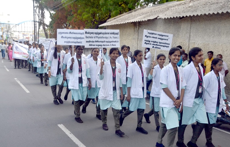 பேரணியில் பிசியோதெரபிஸ்ட் சங்க நிர்வாகிகள் நந்தகுமார், ராஜகோபால், புவியரசு, பிரதீப்ஸ்டாலின், சரத்குமார் மற்றும் தனியார் கல்லூரி மாணவ, மாணவிகள் கலந்துகொண்டனர்.