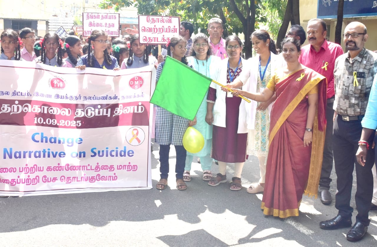 நாமக்கல்லில் நடைபெற்ற உலக தற்கொலை தடுப்பு தின விழிப்புணர்வு பேரணியை மாவட்ட ஆட்சியர் துவக்கி வைத்தார்.