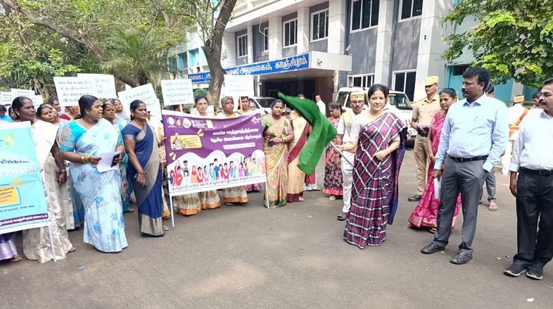 அவ்வகையில் தமிழ்நாடு மாநில ஊரக வாழ்வாதார இயக்க காஞ்சிபுரம் மாவட்ட சார்பில், மாவட்ட ஆட்சியர் அலுவலக வளாகத்தில் இன்று விழிப்புணர்வு நடைபெற்றது.