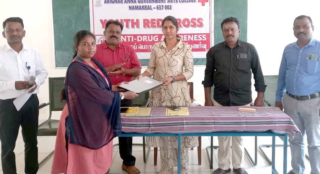 நாமக்கல் அறிஞர் அண்ணா அரசு கலைக்கல்லூரியில், யூத் ரெட் கிராஸ் சார்பில், மனநல பாதுகாப்பு மற்றும் போதைப் பொருள் எதிர்ப்பு விழிப்புணர்வு கருத்தரங்கம் நடைபெற்றது. நிகழ்ச்சிக்கு கல்லூரி முதல்வர் (பொ) ராஜேஸ்வரி தலைமை வகித்தார்.