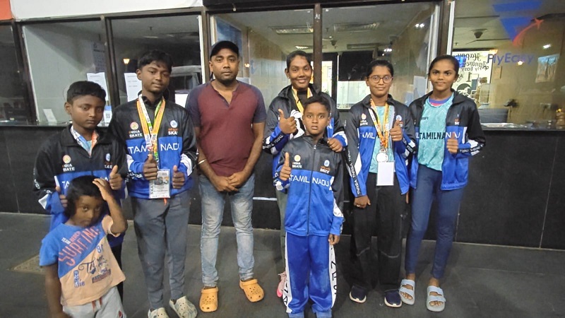 15 மாநிலங்கள் கலந்து கொண்ட தேசிய ஜூனியர் ரோலர் ஸ்கேட்டிங் போட்டியில் தமிழகத்தின் சார்பில் 30 மாணவிகள் கலந்து கொண்டனர். இதில், மூன்று தங்கம், ஆறு வெள்ளி பதக்கம் வென்று சாதனைகள் படைத்தனர்.