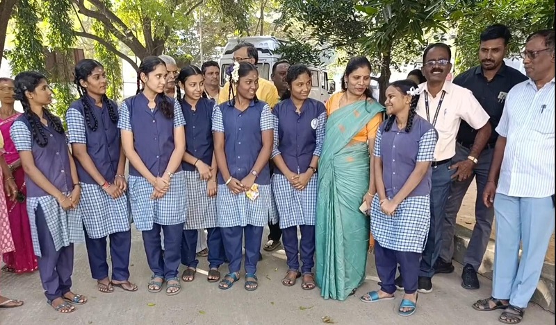 இதில் காஞ்சிபுரம் மாவட்டத்தில் இருந்து 7 அரசு பள்ளி மாணவிகள் இன்று கடலூருக்கு புறப்படும் முதன்மை கல்வி அலுவலர் நளினியை சந்தித்து வாழ்த்துக்கள் பெற்றனர்.