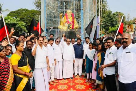 இந்த நிலையில், பெரியாரின் நினைவு நாளையொட்டி திருவண்ணாமலை மாவட்ட தி.மு.க.  சார்பில் தந்தை பெரியாரின் நினைவு நாள் அனுசரிக்கப்பட்டது. அவரது திருவுருவ சிலைக்கு பொதுப்பணித்துறை அமைச்சர் வேலு, சட்டப்பேரவை துணை சபாநாயகர் பிச்சாண்டி ஆகியோர் மாலை அணிவித்து மரியாதை செலுத்தினர்.