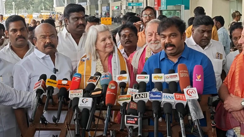 பிரிட்டன் கிம்ம்பர்லி மாகாண மேயருக்கு மதுரை விமான நிலையத்தில் அதிமுகவினர் சிறப்பான வரவேற்பு