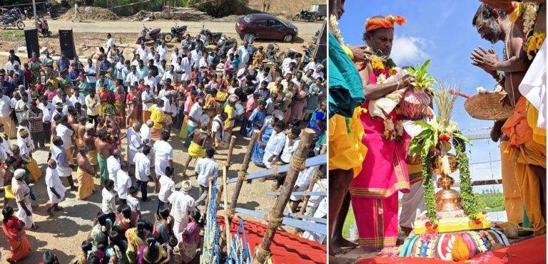 யாக சாலையில் வைக்கப்பட்ட புனித கலசங்களில் உள்ள புனிதநீா் ஊா்வலமாக கொண்டு வரப்பட்டு கோயில் கலசத்தில் ஊற்றப்பட்டு கும்பாபிஷேகம்நடைபெற்றது. ஏராளமான பக்தா்கள் கலந்து கொண்டு சுவாமி தரிசனம் செய்தனா்.