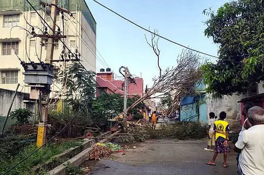 இதுகுறித்து தகவல் அறிந்த மின்வாரிய ஊழியா்கள் வந்து மரக்கிளைகளை அகற்றி மின் இணைப்பு கொடுக்கும் பணியில் ஈடுபட்டனா்.